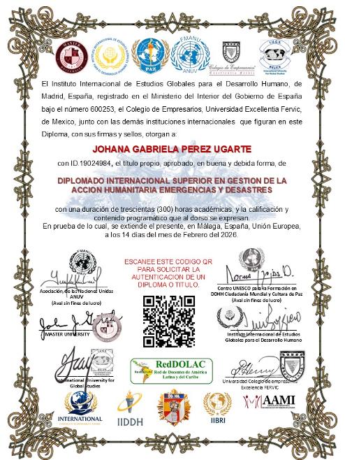 En principio no es necesaria una titulación de pregrado específica para los DIPLOMADOS INTERNACIONALES DE 300 HORAS, dada la ausencia de esta limitación en la filosofía de las Organizaciones Patrocinantes. Todos ellos han sido diseñados para que el/la alumno/a pueda estudiar cómodamente en su hogar y de manera autodidacta. No obstante, es aconsejable un nivel suficiente de instrucción, que permita asimilar mejor la capacitación recibida. Bachilleres, estudiantes universitarios, técnicos de grado medio y personas con experiencia afín a la temática a cursar son cordialmente bienvenidos.